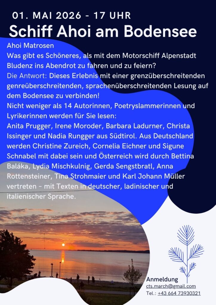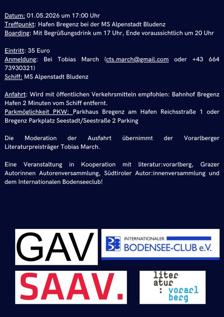01 Mai 26: Schiff Ahoi am Bodensee. Bregenz, Hafen. Lesung.